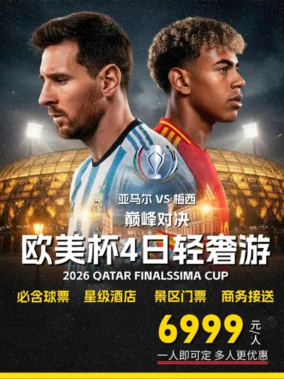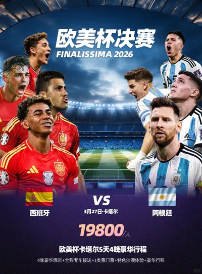 在2026年3月27日 卡塔尔多哈,卢塞尔球场! 历史将再度上演—— 梅西领军的阿根廷与亚马尔领衔的西班牙 巅峰对决,争夺欧美杯至高荣耀!⚽️ . 行程参考: 3月26日-抵达卡塔尔多哈 3月27日-观看看欧美杯决赛 ...